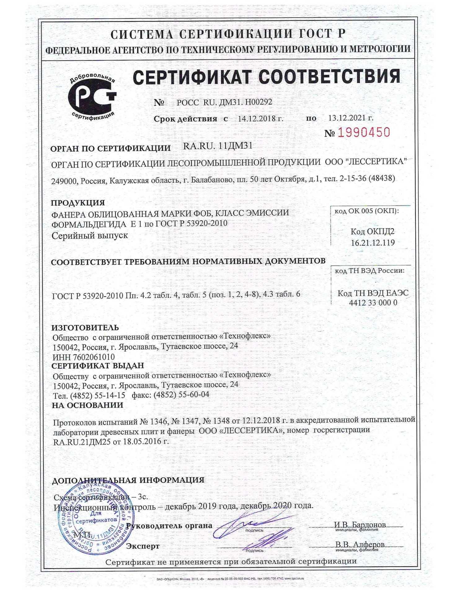 Подтвержденное сертификатами и действующими ГОСТ